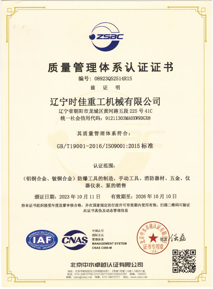 榮譽資質(zhì)-遼寧時佳重工機械有限公司